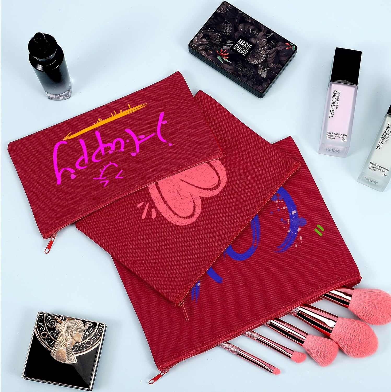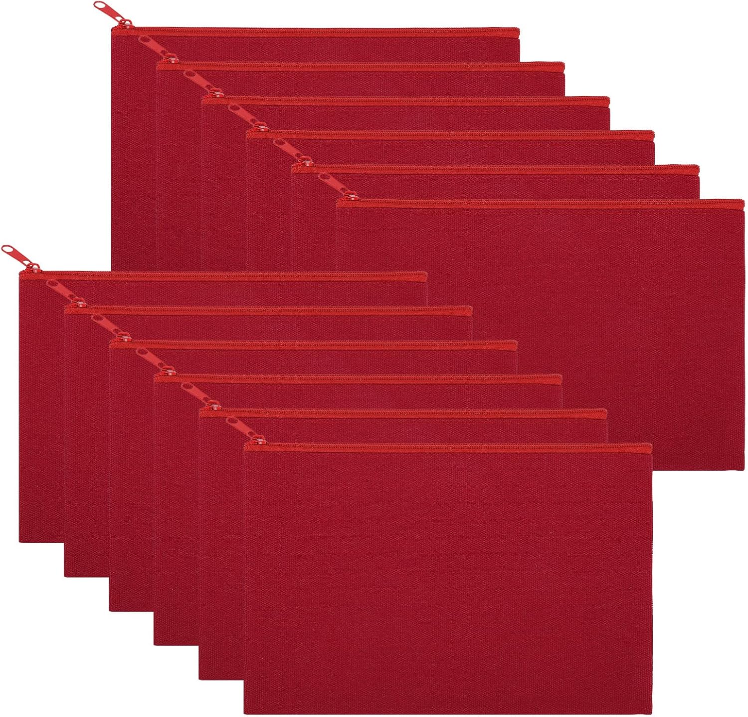 12 Pieces Cotton Canvas Makeup Bag, Multipurpose Cosmetic Bag with Zipper Travel Toiletry Pouch, Blank DIY Craft Bag (Red, M)