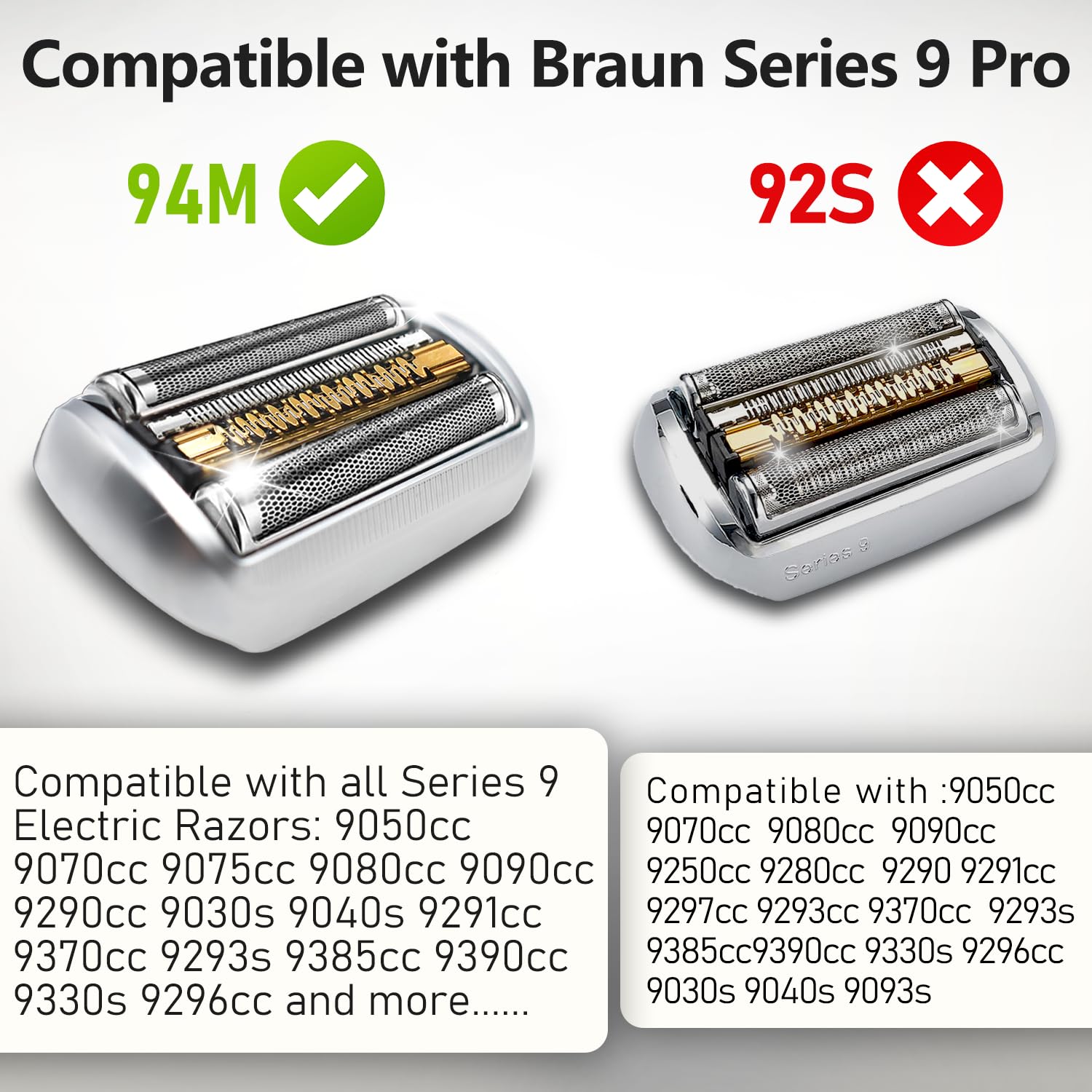 S9 94M Shaver Head for Braun Series 9 & Series 9 Pro, Replacement Foil & Cutter Blade for Braun Electric Razor 9290cc, 9291cc, 9370cc, 9376cc, 9293s, 9260s, 9295cc, 9385cc ect and More
