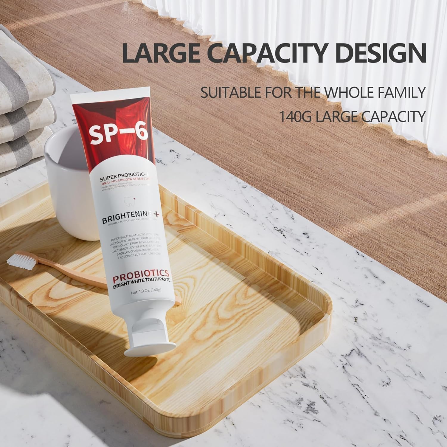 - 🦷💦【Advanced Probiotic Formula】: SP-6 Probiotic Whitening Toothpaste contains 6 scientifically selected probiotics to balance oral microbiome, targeting harmful bacteria for long-lasting freshness and healthier gums.
