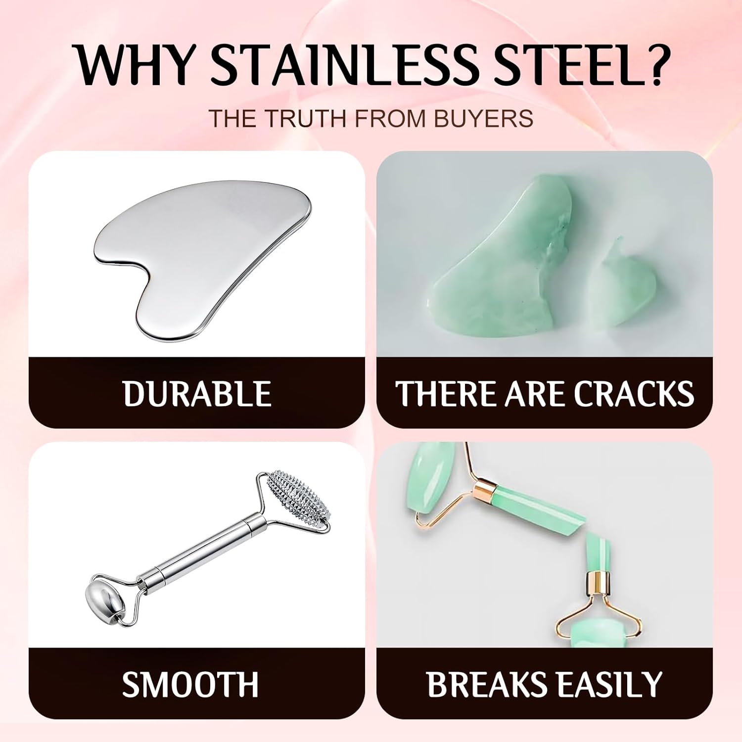 - 【Quality Material】: This gua sha tool and facial roller are made of high-quality stainless steel. They offer high stability, reduce friction, and provide support for sensitive skin.
