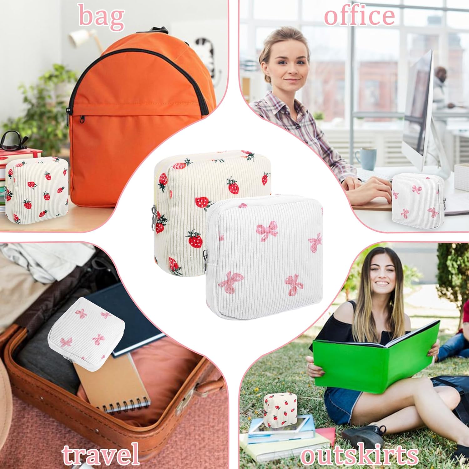 2 Pack Period Bag, Corduroy Cute Sanitary Napkin Storage Bag for Girls Women, Menstrual Pad Pouch Tampon Holder for Purse, Small Make Up Bags