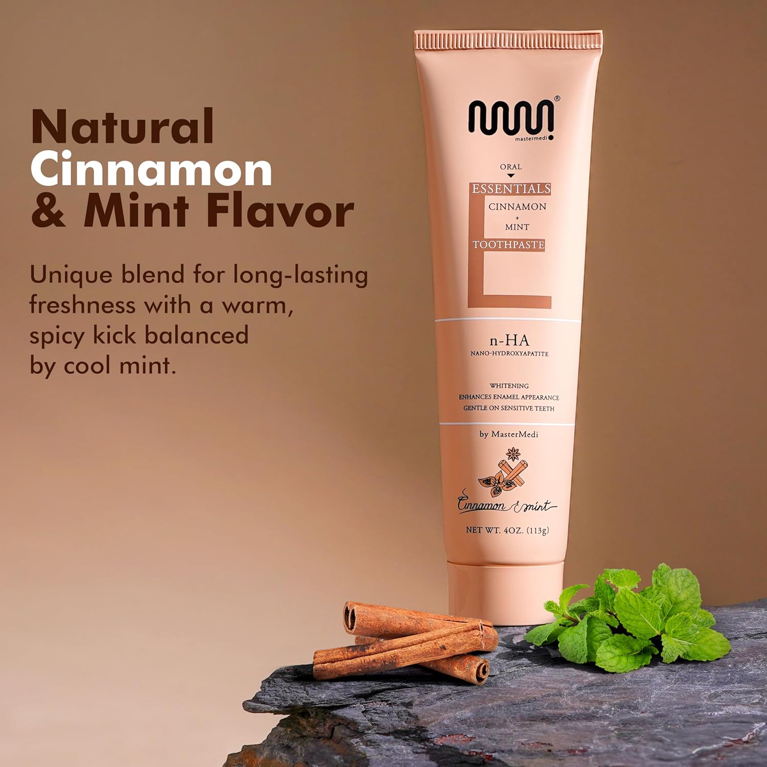 MasterMedi Nano Hydroxyapatite Toothpaste (Inspired by 10% nHA Formulas), Fluoride-Free, Whitening & Sensitivity Relief, Enamel Repair Support, SLS-Free, Xylitol, Mint & Cinnamon 4 Oz (Pack of 3)