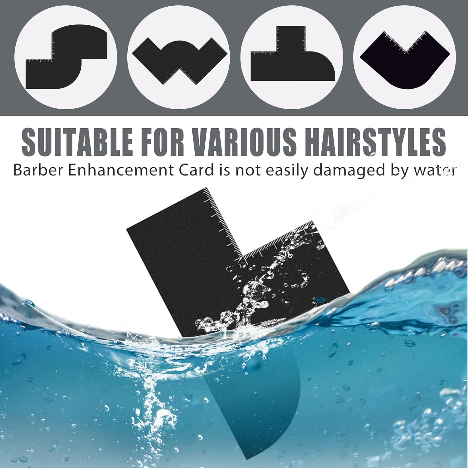 4 Pcs Enhancement Card for Barbers, Professional Hairline Shaping Tool with Measurement Indicators, Durable Reusable Shape Up Tool for Hairline and Beard, T+S+W+V Shaped