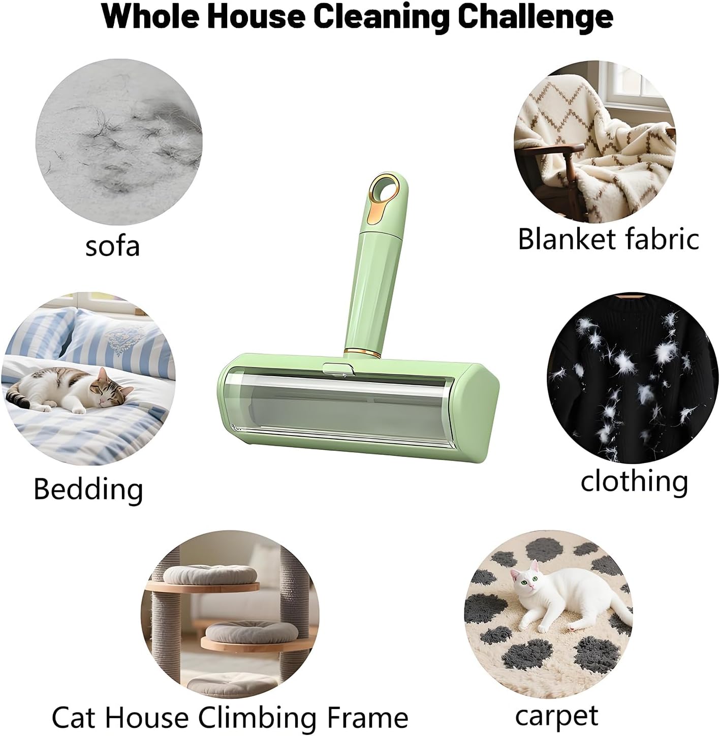 - Glue-free, recyclable design: Abandoning the traditional adhesive/tear-off structure, a reusable dense mesh roller is used, eliminating the need for frequent replacement of consumables. After rolling to absorb hair, it can be emptied with one click for recycling, which is environmentally friendly and cost-saving.