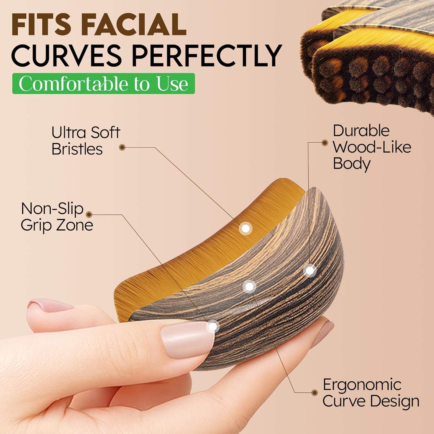 Pack of 2 Lymphatic Contour Face Brush-Facial Dry Brush-Lymphatic Drainage Massager,Soft Dry Brushing Beauty Tool for Jawline, Chin & Facial Sculpting Designed to Fit Precisely (2 pc)