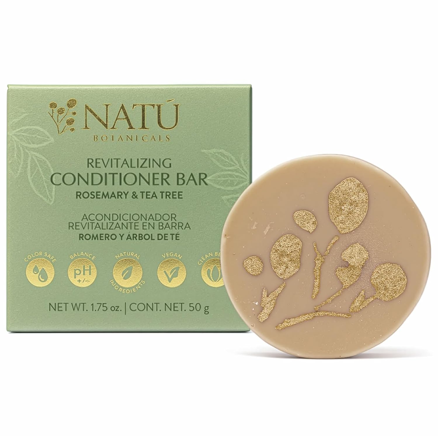 NATÚ BOTANICALS Revitalizing Hair Conditioner Bar – Rosemary & Tea Tree - Hydrating Conditioner for Dry & Frizzy Hair - Deeply Nourishes & Detangles - Supports Healthy Hair Growth - Zero-Waste