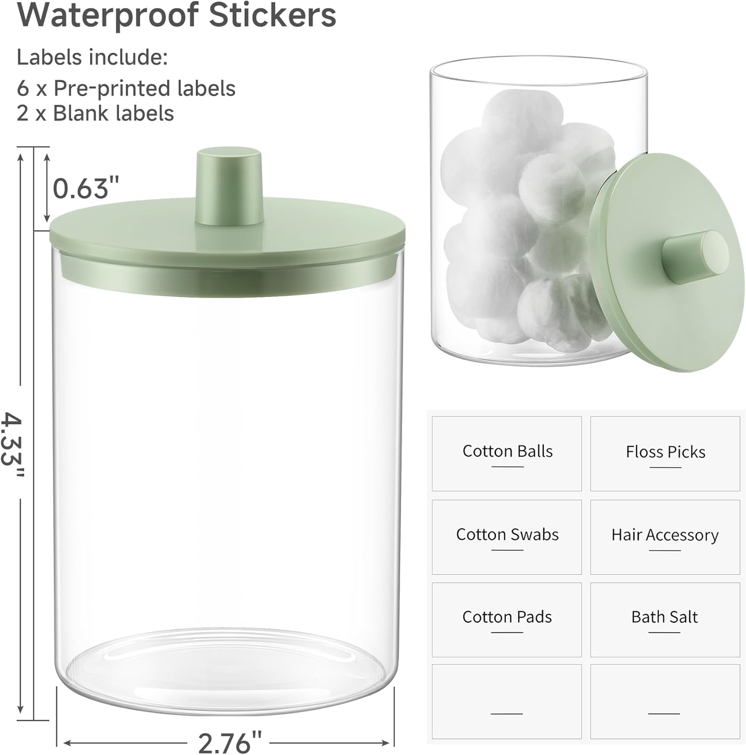 - What’s Included: 2 Glass q tip holder dispensers with lids + 8 transparent labels +8 White Labels