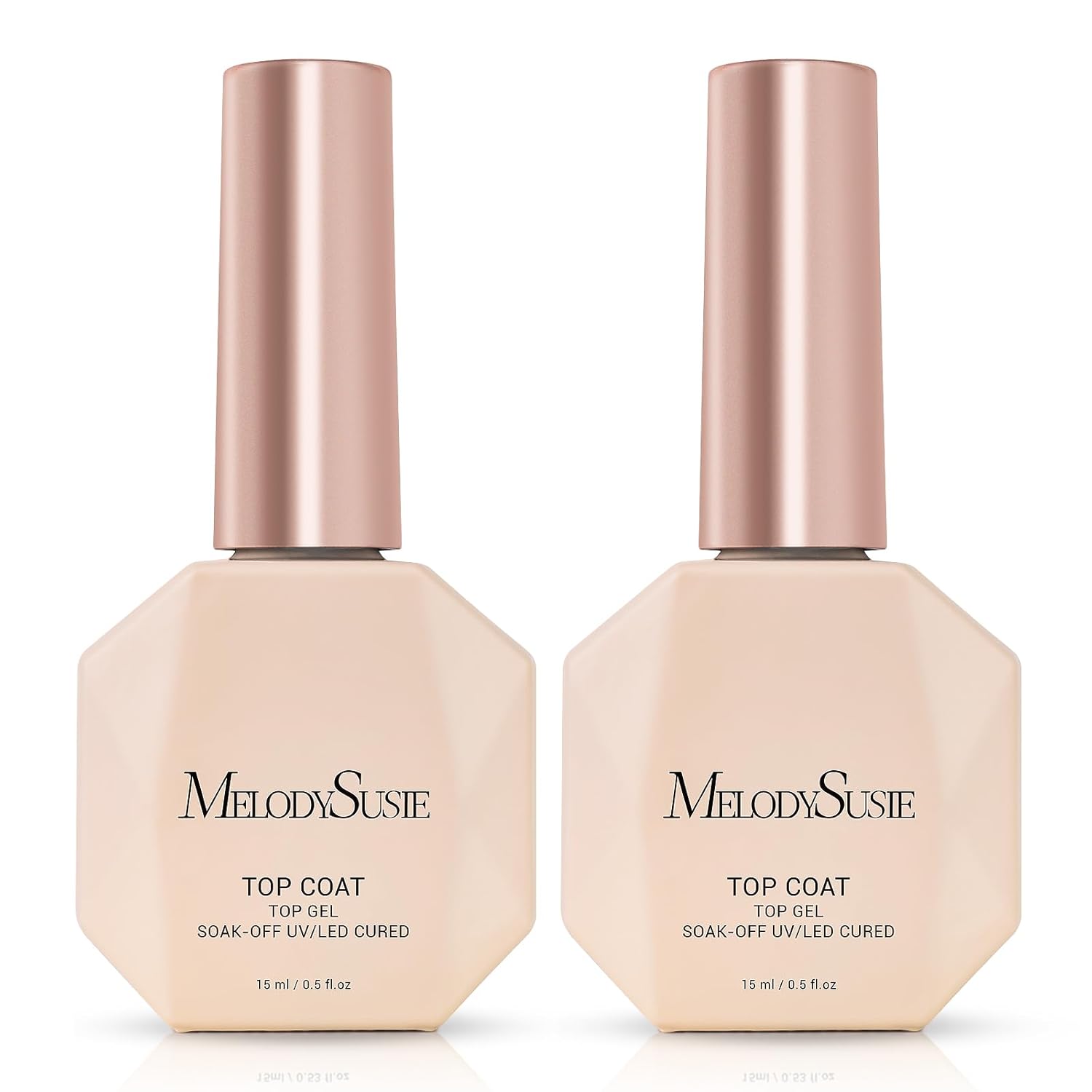 MelodySusie No Wipe Glossy Top Coat Long Lasting Shine Finish Soak Off UV LED Nail Lamp Nail Polish Art Design Manicure Kit Perfect Gifts for Women Girls 2 Pcs 15ml Clear