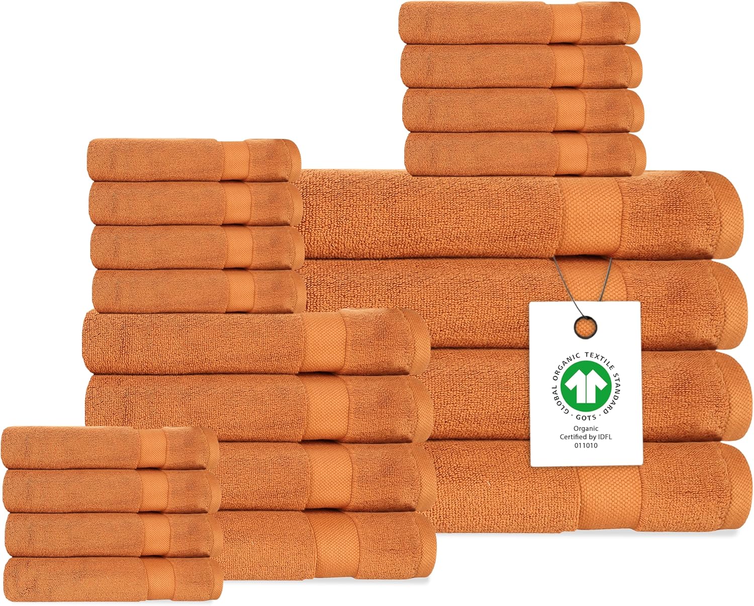 Delara Organic Cotton Luxuriously Plush Bath Towel 20 Piece Set|GOTS & Oeko-TEX Certified|Premium Hotel Quality Towels|Feather Touch Technology|650 GSM Long Staple|Soft, Quick Dry & Ultra-Absorbent