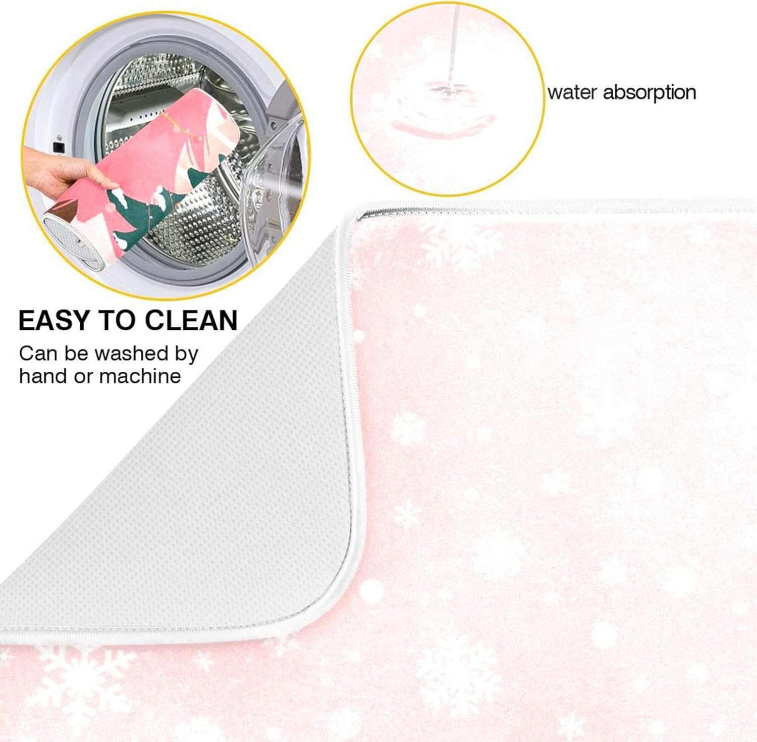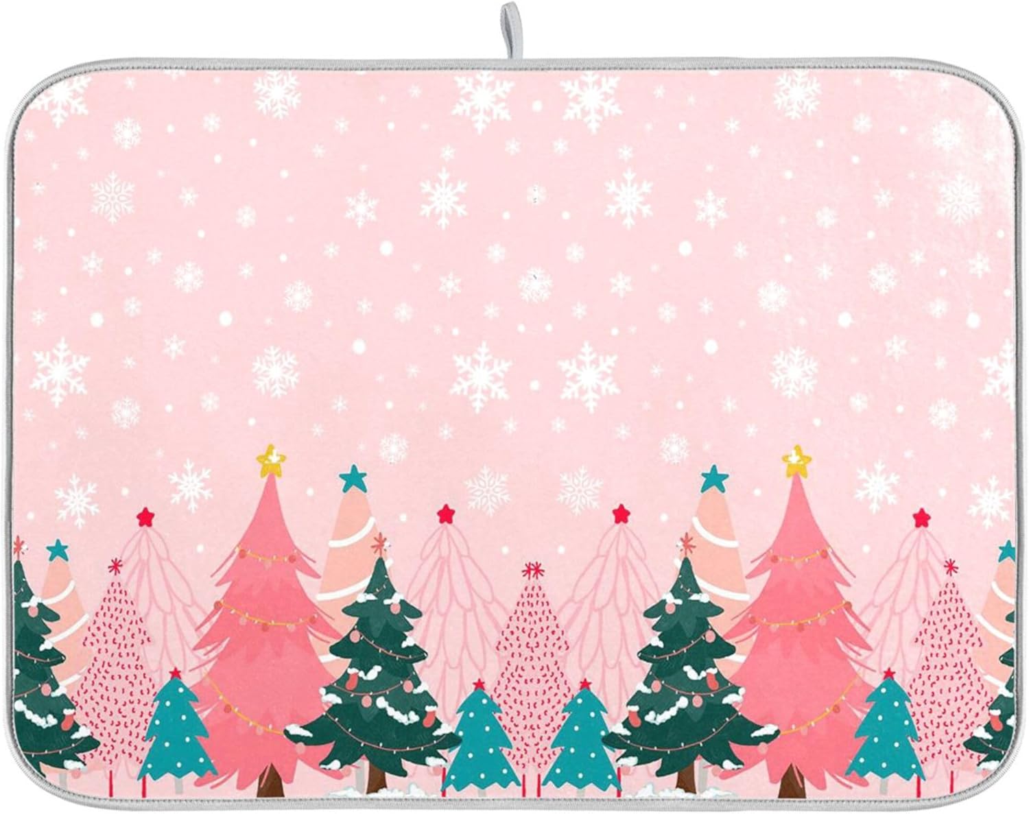 Christmas Tree Pink Dish Drying Mat for Kitchen Countertop 18x24 Winter Snowflake White Xmas Large Drying Mat Reusable Quick Dry Dish Sink Mats Easy Clean Decorative Essentials