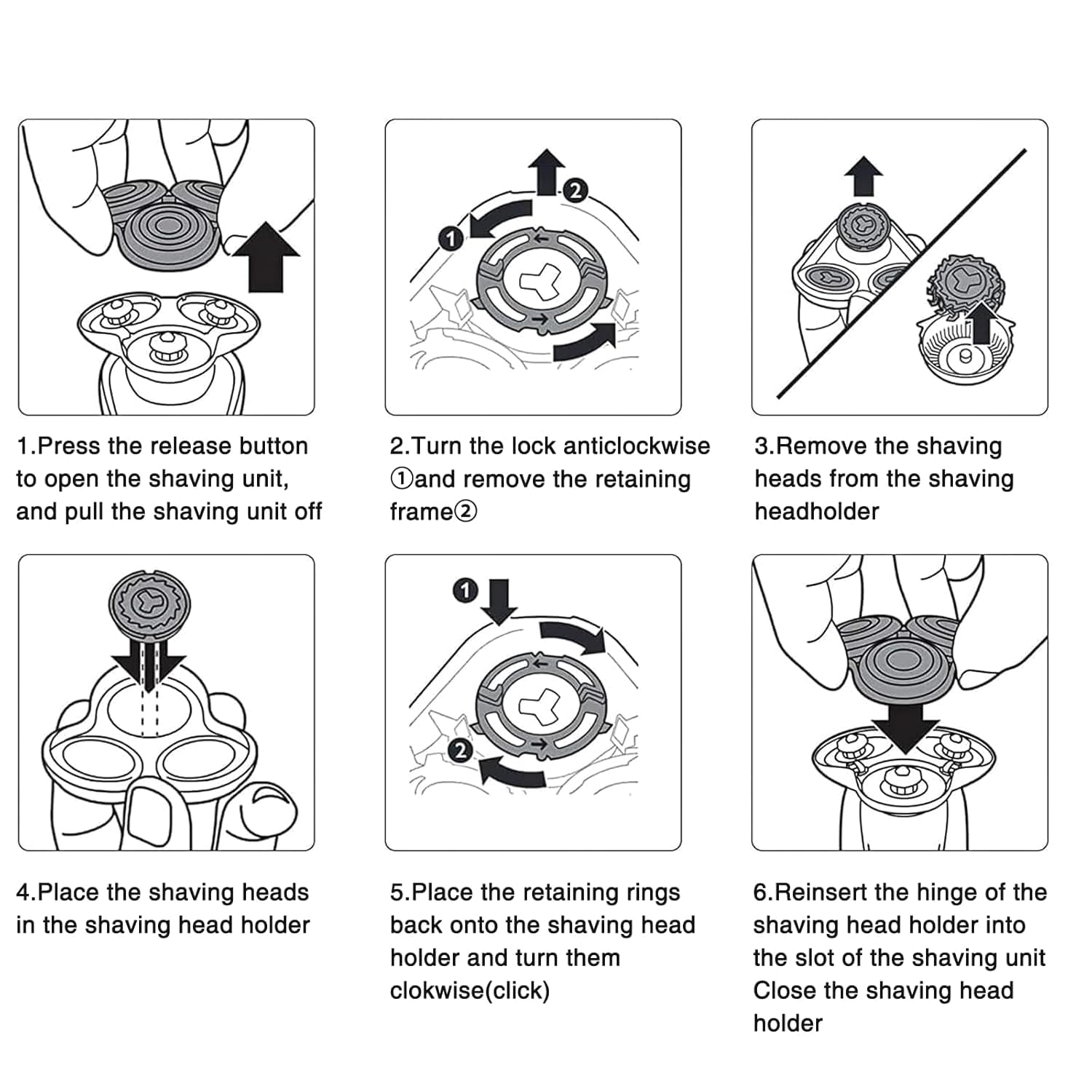- [Easy Replacement & Installation]: Easy to take off and replace a new head- just two minutes. After installation, put a drop of oil on each nozzle and run for 10 seconds to get the best experience. It's recommended that you replace the shaving head every 12 months to get the max shave performance.
