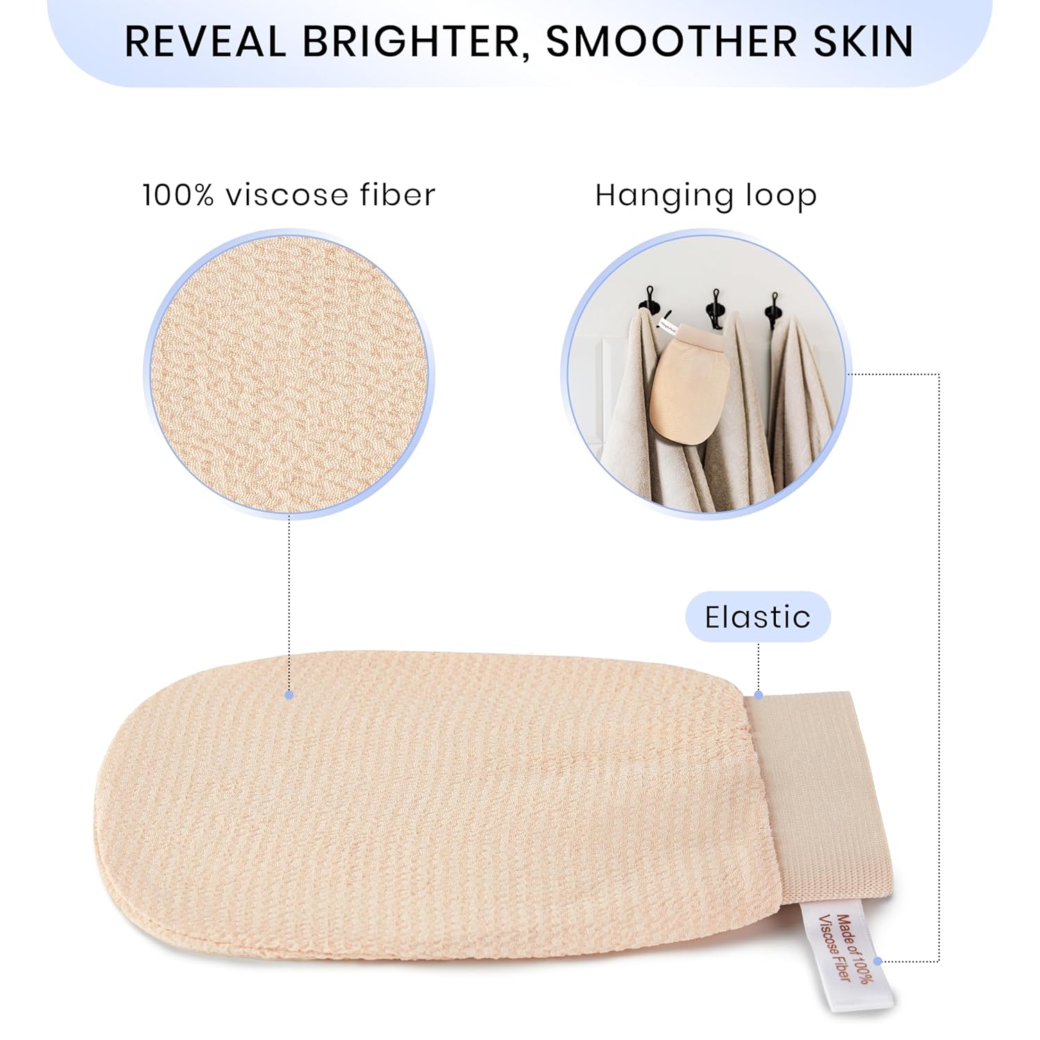 Korean Exfoliating Mitt for Remove Dead Skin. 2 Pack 100% Viscose Kessa Deep Exfoliating Gloves for Body Scrub, Keratosis Pilaris & Self Tanning Removal. Smooth Skin Surface. (Muted Peach)