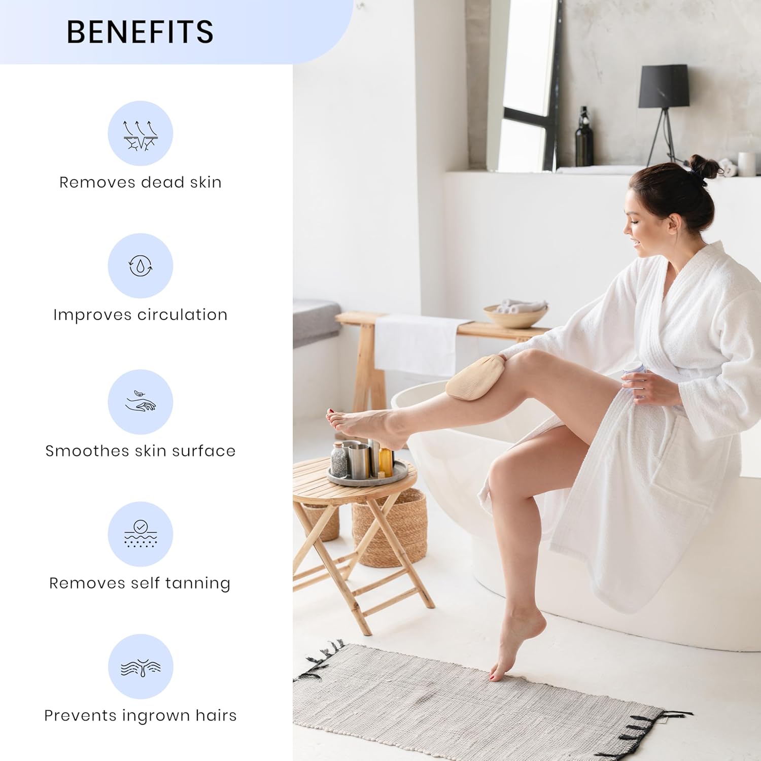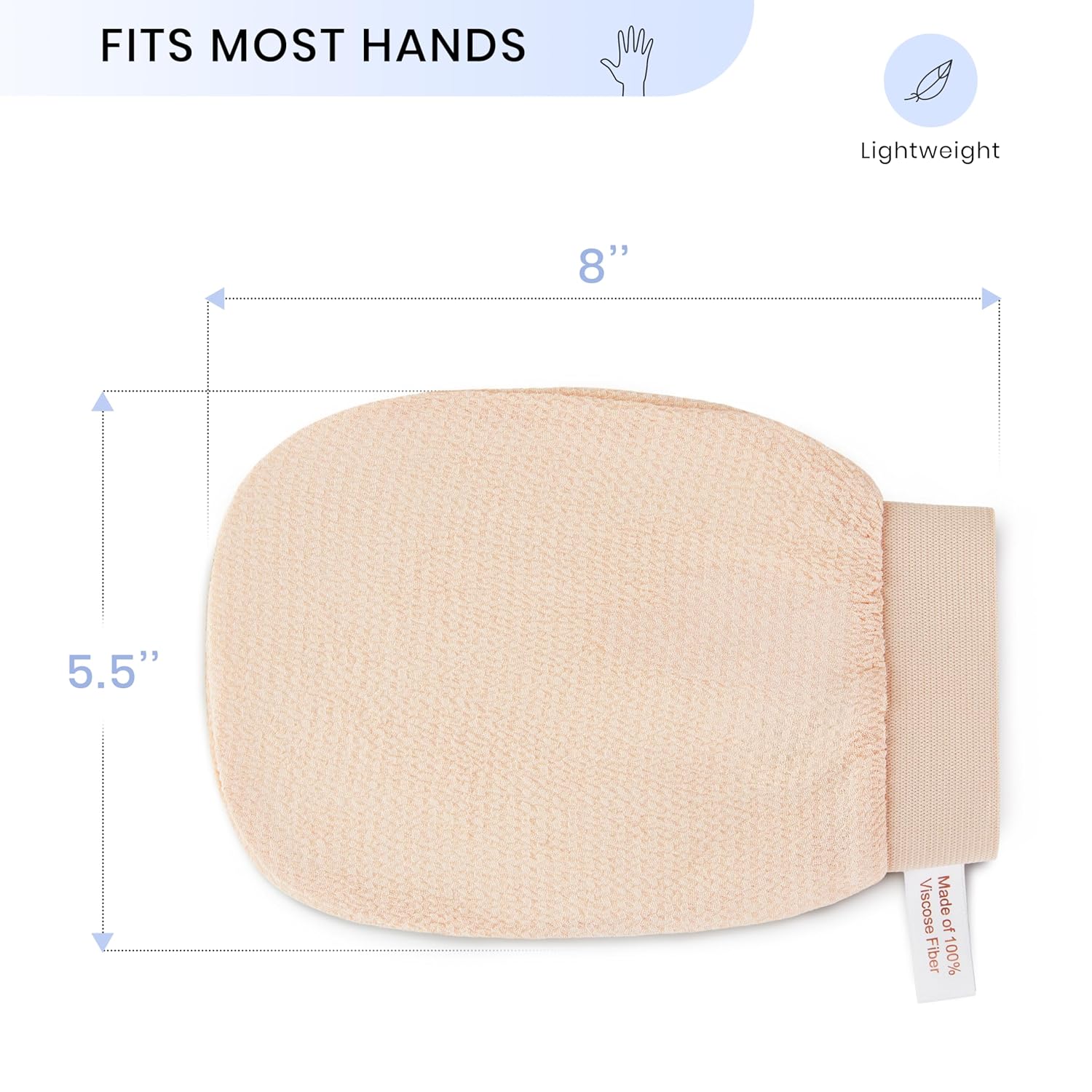 - One size fits All. Wears them easily on your hand for exfoliating control.