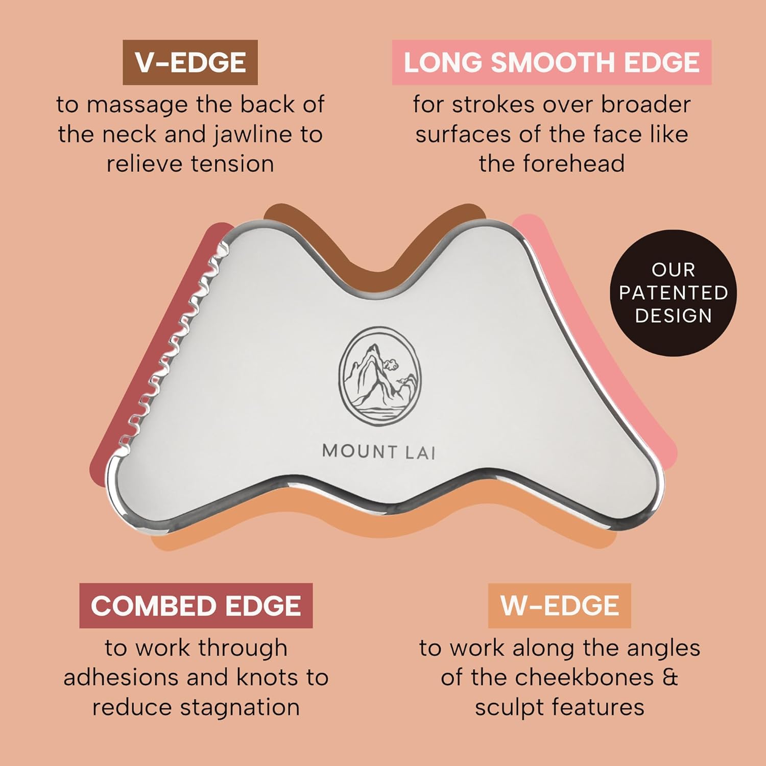 Mount Lai The Vitality Qi Stainless Steel Gua Sha Contour Tool - Face & Body Guasha Tools for Self-Care, Sculpting, Puffiness Relief & Muscle Tension Massage
