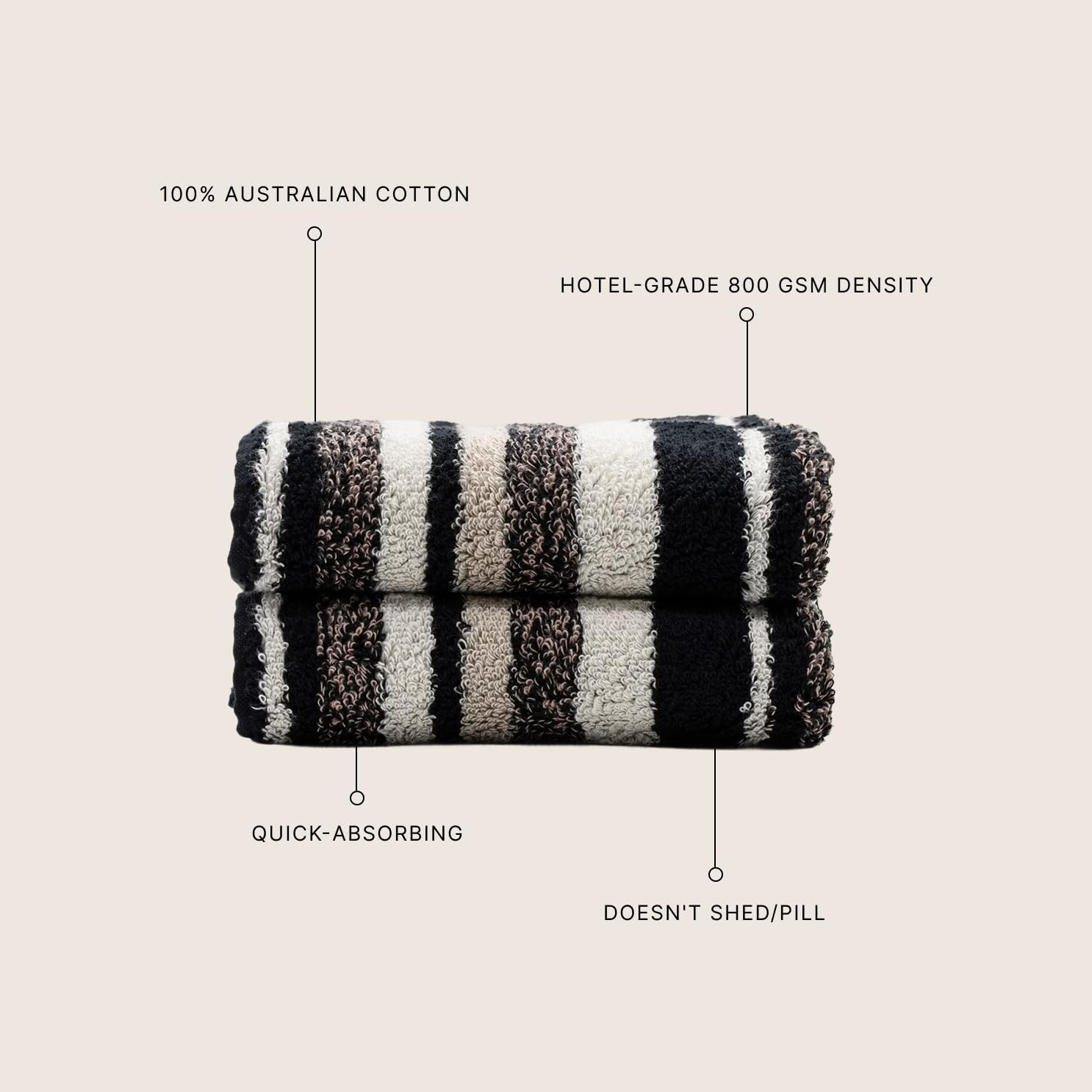 Italic Ultraplush 100% Australian Cotton Towels Standard 6 Piece Set, 2 Bath, 2 Hand, 2 Washcloths, 800GSM Lightweight, Highly Absorbent Quick Dry Soft Resort Grade Towels (Stripe Multi-Color)