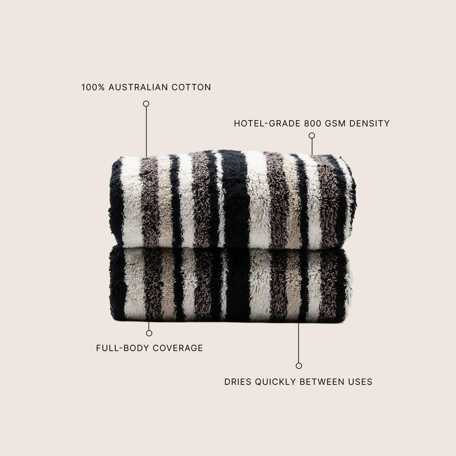 Italic Ultraplush 100% Australian Cotton Bath Sheets - Set of 2 Luxury Extra Large Heavy Duty Bath Sheets, 800GSM Plush and Absorbent Bath Sheets for Hotels, Bath & Spa (Stripe Multi-Color)