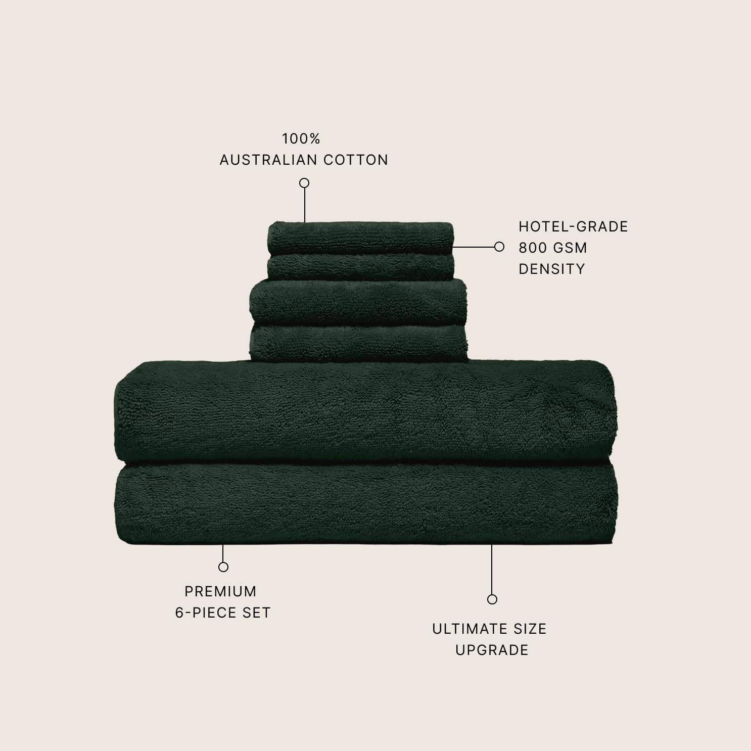 Italic Ultraplush Luxe 6 Piece Towel Set – 2 Bath Sheets, 2 Hand Towels, 2 Washcloths – 800GSM Soft, Highly Absorbent & Quick Drying, Resort Grade 100% Australian Cotton Towels (Deep Forest)