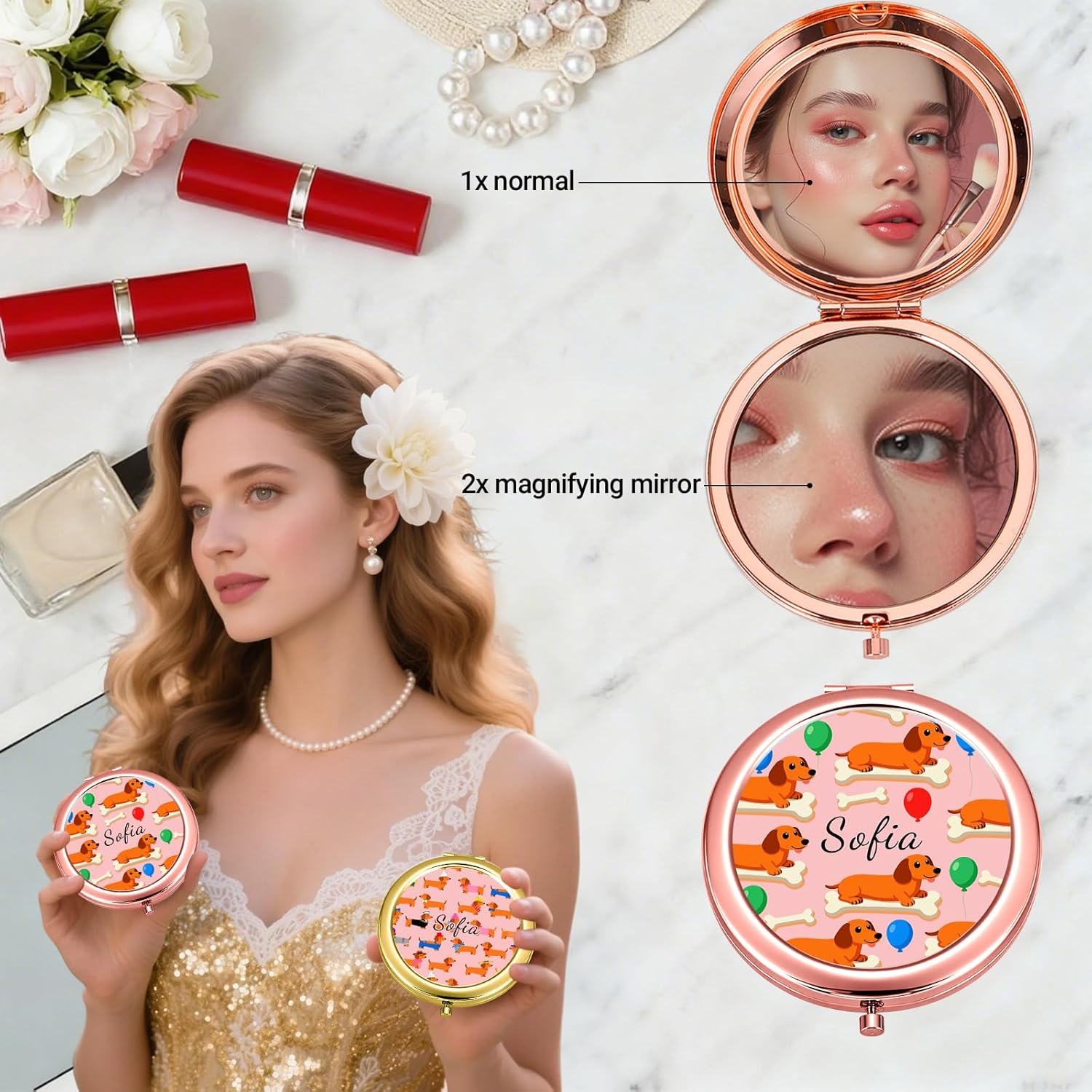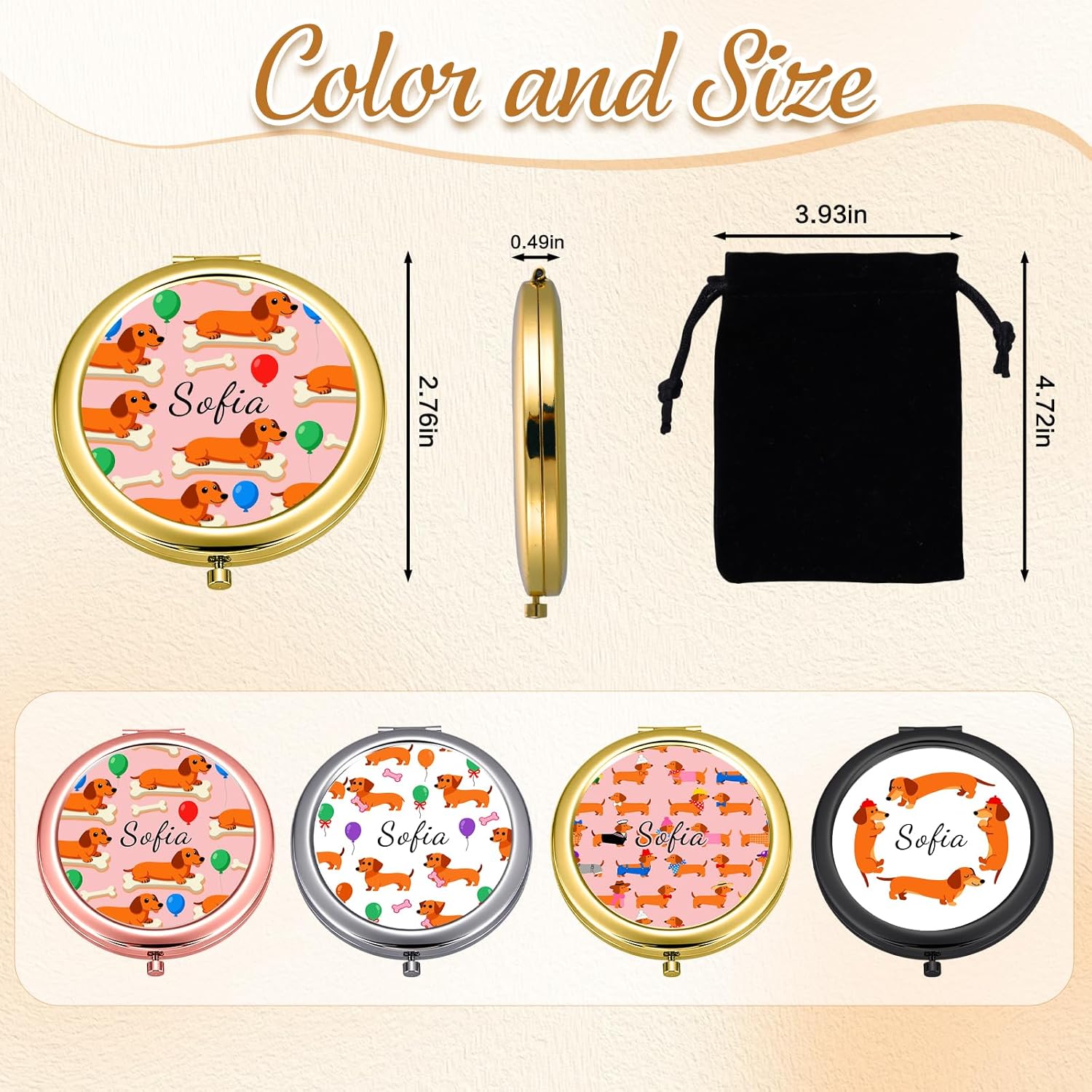 Custom Compact Mirror with Name - Personalized Flip Makeup Travel Pocket Mirror Gift for Women Bridesmaids Wedding Birthday (Dogs)