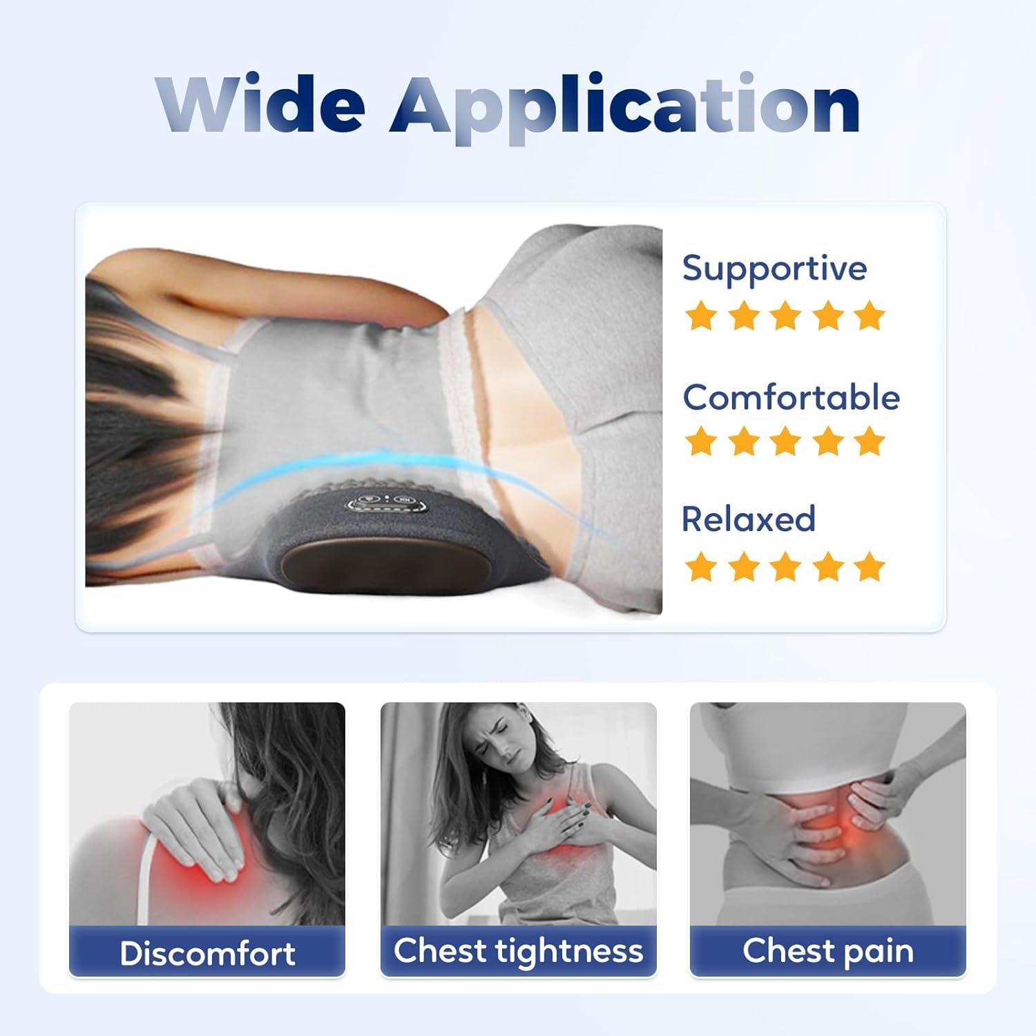 - [Versatile Application]: Suitable for adults seeking muscle relaxation, tension relief, or improved comfort after long periods of sitting. Can be used in multiple positions on the back, shoulders, or neck to address different areas of stiffness